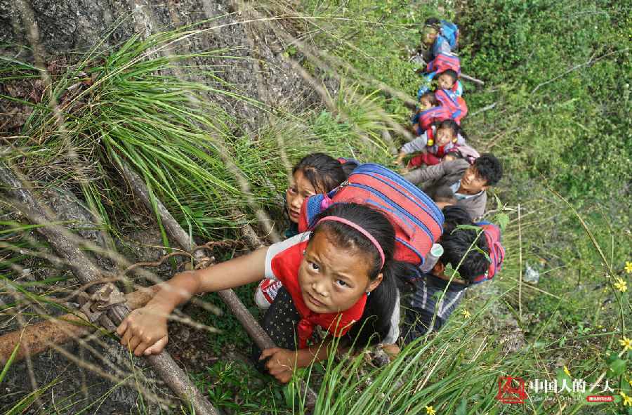 讀書時每個孩子必須經歷的途徑,而位于四川涼山這個地界彝族自治州昭覺縣支爾莫鄉阿土勒爾村,有很多兒童卻因為環境影響不能正常讀書,而讀書之路要經過攀爬近一百米的懸崖才能走出大山,這個村莊每天都有人因為爬上懸崖而摔傷,根據當地村了解到這條懸崖已經有七八個人被摔傷了,而更讓人擔心的是每個月上學讀書的孩子們、每次上學下山時都會給讓三個成人陪同十五個孩子一起爬懸崖讀書,通常下山需要一個小時,上山需要一個半小時,而外來人員則需要這個時間的一倍左右,這也讓村里年齡小一點的沒有去讀書的原因。