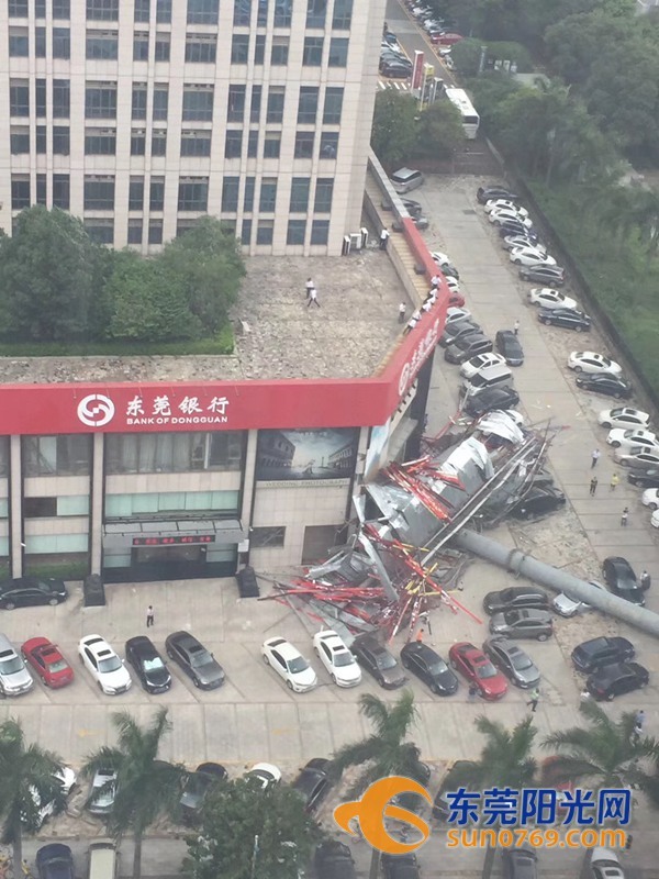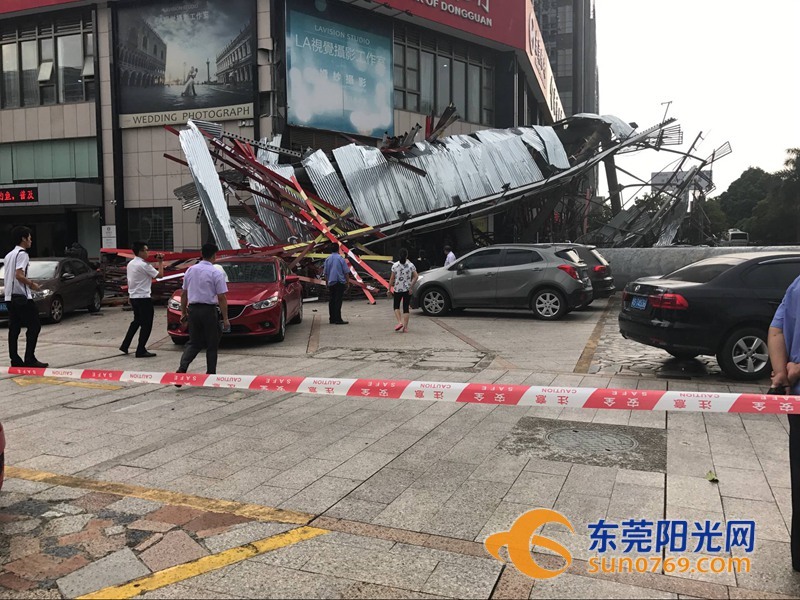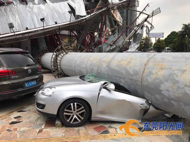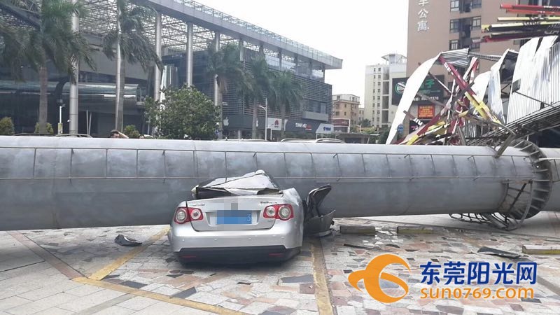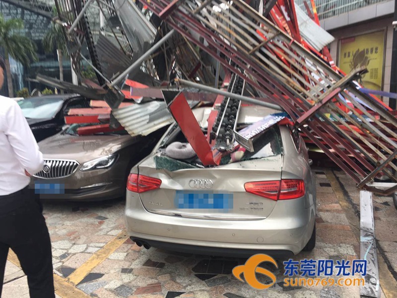 9月4日中午,根據(jù)廣東東莞網(wǎng)友爆料稱,位于東莞市東莞大道輔道一怡豐路十字路口一個(gè)大型廣告牌倒塌導(dǎo)致停車場內(nèi)多車受損嚴(yán)重,有幾輛車直接被壓扁,完全報(bào)廢,不過慶幸的是沒有造成人員傷亡。