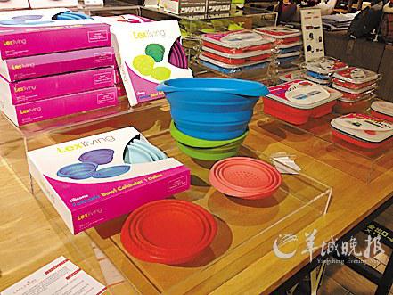 近年來,色彩繽紛,造型可愛多樣的硅膠廚具迅速走紅,盡管價格偏高,卻還是大受歡迎?!斑@些杯子、碗、保鮮盒都是用食用級硅膠做成的,絕對放心,還能隨意折疊”。在正佳廣場生活概念館的一位工作人員介紹說,硅膠材質柔軟,可折疊,可彎曲,不易變形,用它制成的可折疊飯盒,一只手就能把飯盒拍扁收納,雙手輕輕一抖即可充分打開,方便攜帶,輕松收納。而且硅膠材質不易沾油污,清洗起來非常方便。多格設計飯菜間不會粘連、串味。七種花色鮮艷靚麗,這樣的飯盒送給同事、好友,是不是特別又貼心呢?