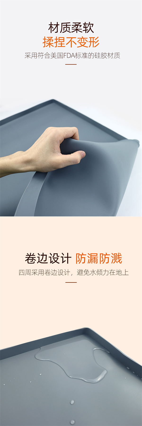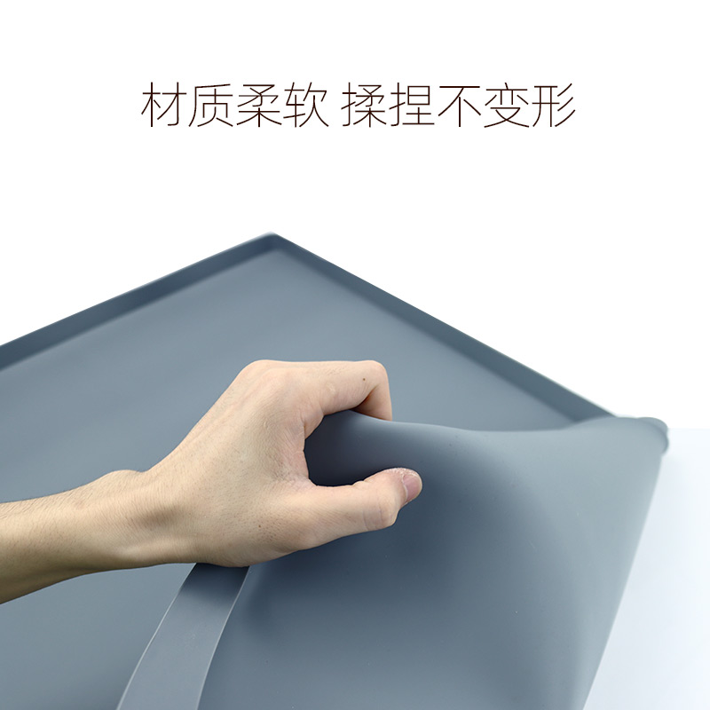 硅膠水槽墊可以在多個不同環(huán)境情況下正常使用,產(chǎn)品不僅可以用于下水槽隔水使用,也可以用于家居防滑腳墊以及廚房洗手臺物品收納擺放作用,硅膠材質(zhì)特性特殊,具備一定的防滑效果和隔熱功能,外圍一圈為擋墻,可以戶外進行物品擺放以及高低溫存放,便于收納以及折疊攜帶等